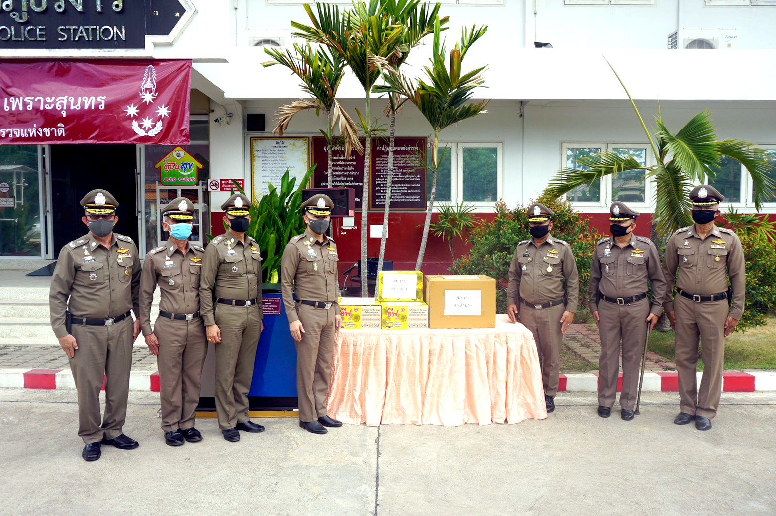 พล.ต.อ.ณัฐธร เพราะสุนทร ที่ปรึกษาพิเศษ ตร. พร้อมด้วย พล.ต.ต.อนุสรณ์ กัณวเศรษฐ ผบก.รท. พล.ต.ต.มนัส ศิกษมัต ผบก.คพ. และคณะ ตรวจเยี่ยมและมอบสิ่งของบำรุงขวัญ เพื่อเสริมสร้างขวัญกำลังใจแก่เจ้าหน้าที่ประจำจุดตรวจควบคุมการแพร่ระบาดเชื้อไวรัสโคโรน่า 2019 (Covid-19) ในพื้นที่ ภ.5 ได้แก่ จว.แม่ฮ่องสอน เชียงใหม่ และลำปาง(28 พ.ค.63)