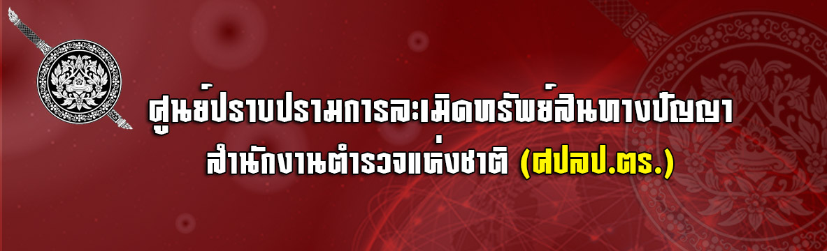สงวนลิขสิทธิ์ ๒๕๖๓ ศูนย์ปราบปรามการละเมิดทรัพย์สินทางปัญญา สำนักงานตำรวจแห่งชาติ